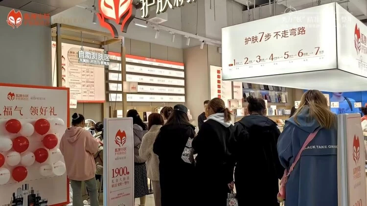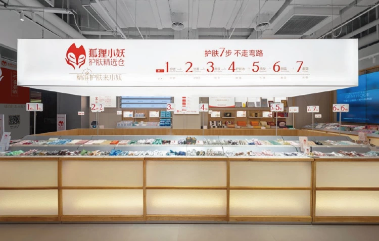 而在具体的门店运营模式上,狐狸小妖则创新推出“护肤精选仓”零售模式,颠覆了传统美妆零售单一产品集成式的门店运营手段。该模式遵循“先测肤、后选品、七步护、更精准” 的16字精准护肤核心,从产品采购和运营场景出发,致力于将零售模式更加聚焦在提供皮肤解决方案的“精”与“准”,推动自身门店运营以“医院式”零售取代“药房式”零售,从而在消费者和护肤产品之间建立了更细化更具针对性的供需消费选择。
