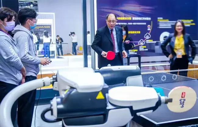 公开信息显示,庞伯特乒乓球机器人是由高通、上海体育学院、庞勃特联合打造的创新产品,采用了5G、AI等技术,可以利用双目摄像头进行实时动态捕捉,并通过基于轨迹的球轨分析、预测系统,以及人体运动捕捉与分析系统,流畅地实现人体动态捕捉及分析运算,并对每一次轨迹进行预测运算和迅速响应,从而能够更好地助力运动员进行训练,同时也让用户在与机器人的互动中获得更出色的体验,这款机器人也成为当年进博会上的“网红打卡点”,吸引了很多观众参与体验。
