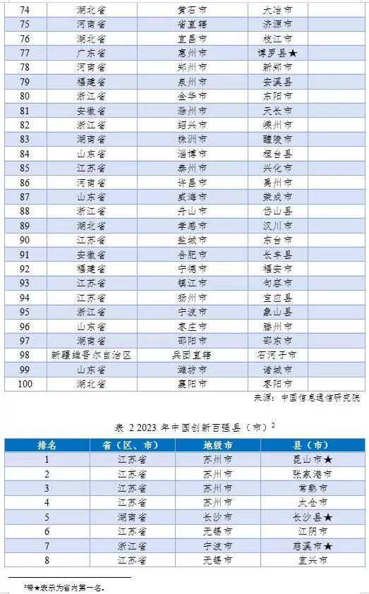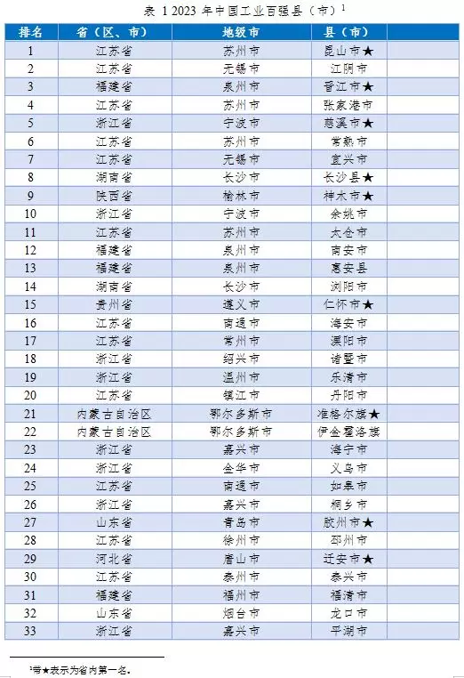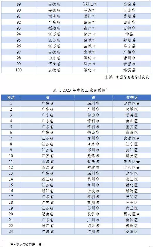 附:2023年中国工业百强县(市)、2023年中国创新百强县(市)、2023年中国工业百强区名单