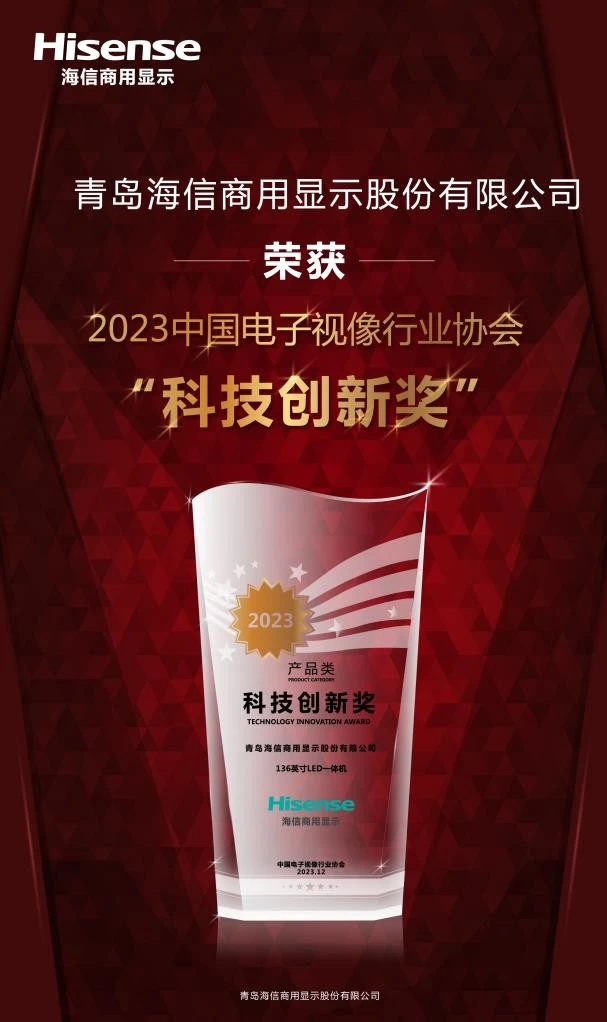 海信商用显示荣获2023中国电子视像行业协会“科技创新奖”