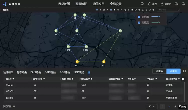 此次云网预知系统在地市开展试点,在网络业务割接前模拟业务路由变化,割接方案涉及复杂IGP/BGP路由协议调整,存在路由环路风险,割接前通过云网预知系统完成割接方案评估验证,仿真网络协议以及流量流向的变化,最大程度避免了割接带来的业务安全风险,运维效率提升效果明显。