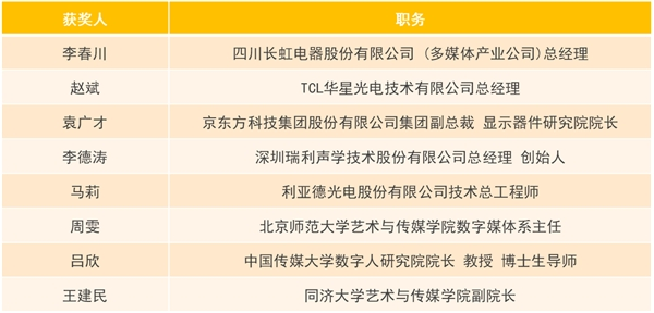 其中的“彩虹奖”旨在对音视频领域内取得重大行业成就、重大技术创新成果、推动产业快速发展并取得广泛影响和突出贡献的技术研发团队领军人物进行表彰,进一步树立尊重人才、崇尚创新的行业发展理念。中国电子视像行业协会执行会长郝亚斌先生现场颁布了2023年度获奖人物:
