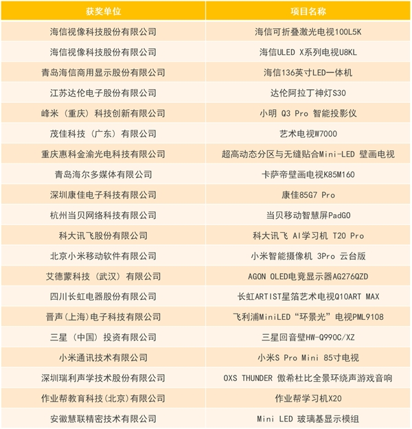 之后,中国电子视像行业协会副秘书长董敏宣布了获得2023年度“科技创新奖”创新产品奖、创新技术奖、创新应用奖、创新设计奖的企业名单。
