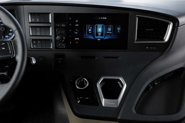 其中,全新人机工程学内饰设计,让身体接触更舒服,一眼望去尽显高端,体验越级豪华!行业最优纯平地板设计,最高处仅150mm,让卡友可以无障碍地随心行动。符合最新一代人体工程学、具备多项可调节功能的高端气囊减震座椅,让卡友怎么坐怎么舒服,十足头等舱享受!四幅式方向盘囊括了各种便捷按键,可让驾驶员更舒适地控制车辆,降低驾乘疲劳度。而且,方向盘背面还带有换挡拨片,转向手力≤30N,操作起来就像小轿车一样轻松。欧曼GTL星翼版还配备10寸多媒体屏幕,让视界加倍、娱乐随心的同时,还能让四方位停车更轻松。