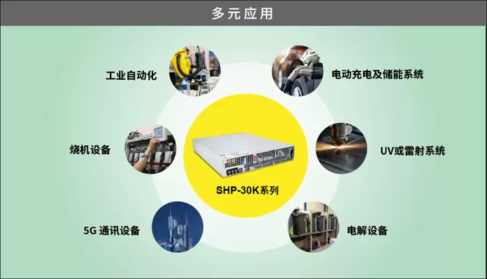 SHP-30K系列延续了之前的SHP-10K系列,具备输出并联扩展功能和可编程控制功能,同时提供多种保护和监控信号。产品以绿色设计为指导,功率密度高达26W/in3,转换效率高达97%。符合EN/UL62368-1 信息类国际安规认证,机构为标准的19英寸Rack机箱2U高度,适用于各种高功率工业设备。
