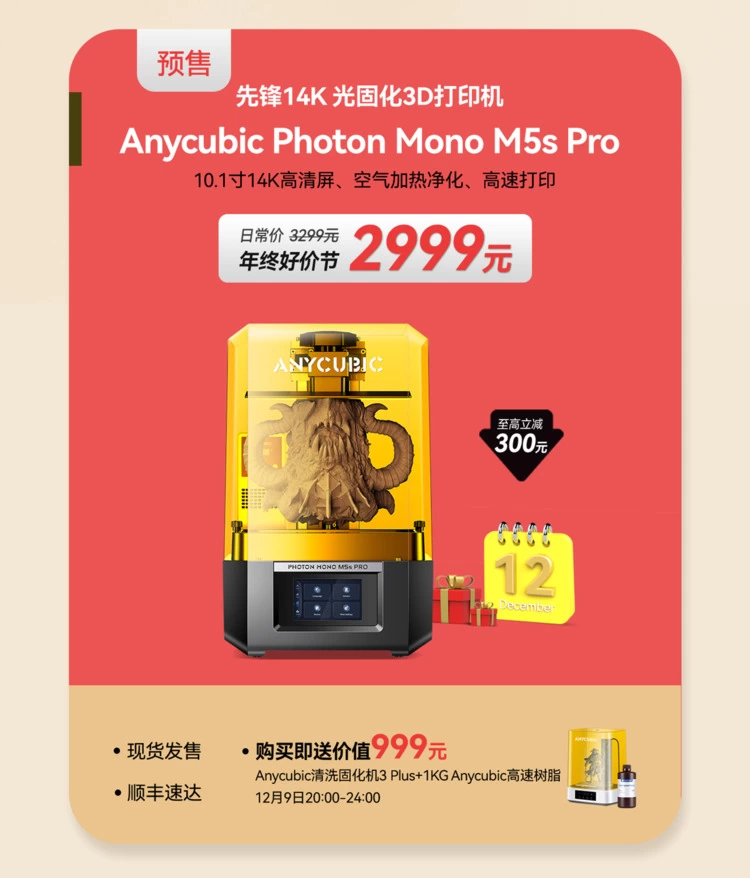先锋14K光固化3D打印机Anycubic Photon Mono M5s Pro