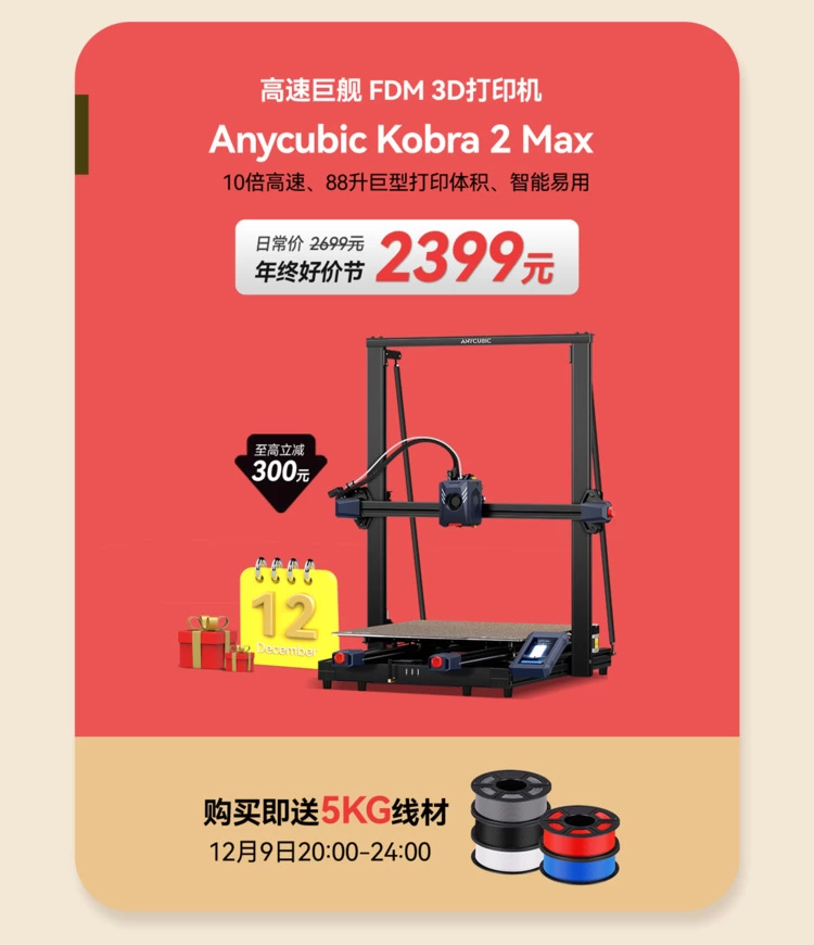 高速巨舰FDM 3D打印机Anycubic Kobra 2 Max