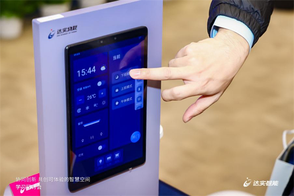 会场演示了达实智能自主研发的智慧建筑APP——达实大厦APP,并为活动来宾提供了体验账号,让大家使用APP中的信息发布功能,控制现场展出的18块达实智能自主研发的空间场景交互屏,实现了即时统一且准确的信息发布。