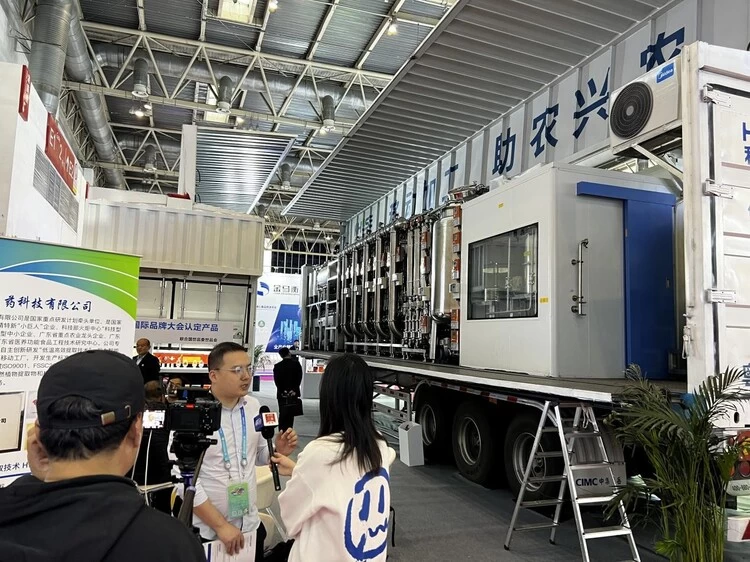 农业农村部媒体记者李宜晓被移动工厂的两辆多功能车载平台吸引到展位现场,并进行了深度的现场采访报道。