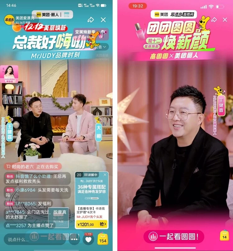 此外,Mr.JUDY洗个头发还积极布局线上渠道,与美团紧密合作。通过自主搭建全渠道运营团队、活动AI数字化运营工具等形式进行线上渠道的拓展。12月6日,Mr.JUDY洗个头发受邀参与美团官方直播,创始人王健霖先生在直播间中与粉丝热烈互动,分享专业的头发头皮养护方法,同时提出了“头皮抗初老”的新概念,将多肽头皮抗衰科技研发项目提上日程。直播结束后,王健霖先生表示,直播不仅是一个简单的、与用户面对面沟通的机会,对于品牌未来发展更有着重要的作用和意义。在“数字化升级+科技养发”的双轮驱动下,Mr.JUDY洗个头发不仅能够触达更多消费群体,也将持续深入地探索渠道优化策略,加速品牌高质量发展。