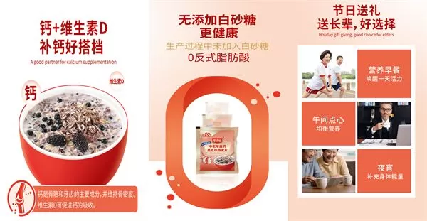 此外,皇麦世家还推出了两款面向中老年人的主打产品。其中,黑芝麻糊特别添加了两种益生元,为肠道注入活力;黑五珍谷物燕麦片采用高钙配方,有助于骨骼和牙齿更坚固。