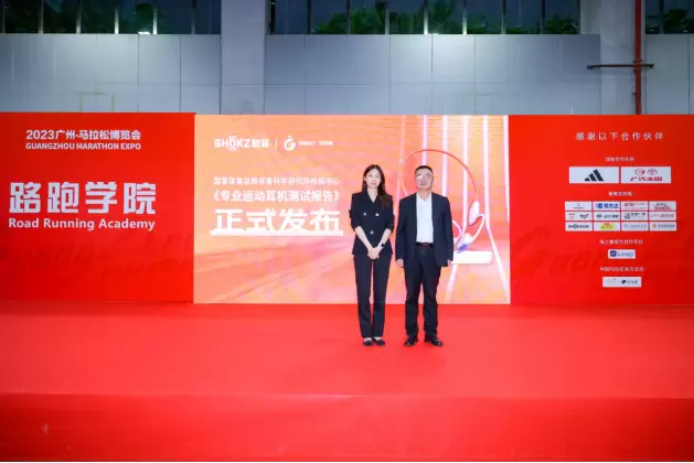 在2023广马赛前博览会上,国家体育总局体育科学研究所检验中心联合专业运动耳机品牌Shokz韶音,正式发布了《专业运动耳机测试报告》,涵盖当前最热门的两款专业运动耳机——韶音OpenRun Pro和OpenSwim。