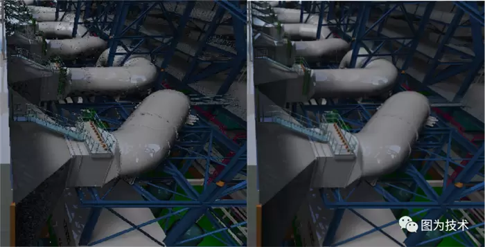 这是由图为技术新一代光线追踪引擎T-3Dˣ在8K屏单张显卡上的操作录屏,展示的是652,641,475三角面,二进制的RVM模型,画质完全是引擎自身的光线追踪实时渲染效果,每秒的帧数超过90帧。