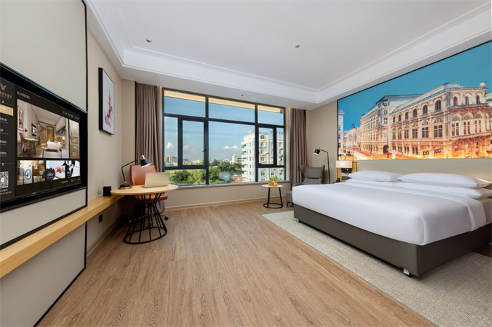 该酒店是集住宿、餐饮、休闲娱乐、商务会议为一体的酒店。每间客房配套了维也纳国际酒店行业首创助眠床品与独特“五感助眠系统”,还配备了人性化智能应用,全力打造极致舒适的全方位住宿体验。