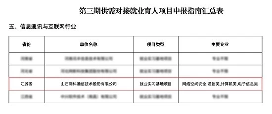 协同育人,山石网科成功入选教育部“第三期供需对接就业育人项目”