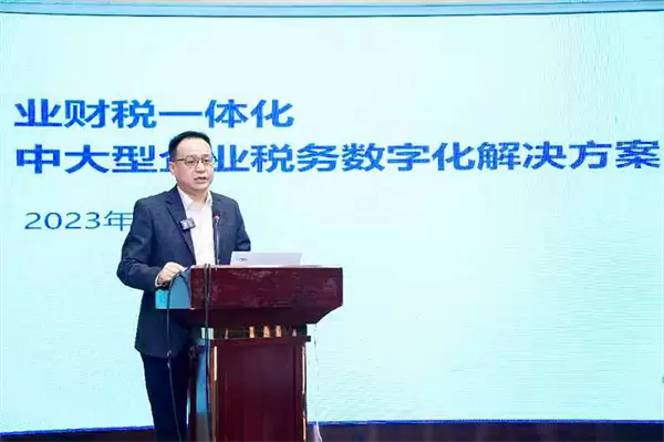 有度税智作为税务数字化领域的代表企业,有幸受邀参与此次蓝皮书的发布和分报告汇报。有度税智总经理赵里海以“业财税一体化:大中型企业税务数字化解决方案”为主题,在发布会现场进行了分享。