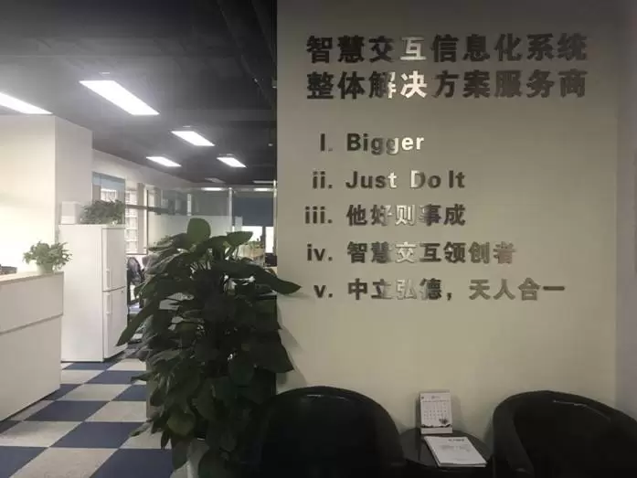 党战雄:我们信奉的是凡事皆以修身为本,无论是对公司还是个人都是一样的,要发挥自己的优势。做出让客户认可的东西。得道多助,同事同仁真心的为客户去做事。从自身出发,公司秉承着的企业文化 :1. 他好则事成,利他主义,为他人去着想,那么我们一定可以成功 。2、BIGGER:更高更大更强,凡事BIGGER,一定要做到BIGGER。3、 JUST DO IT ,公司起初有全职有兼职,大家在不同的区域、不同的国家地区那么如何去做事,我们就一定要有时间观念去做正确的事。那我们一定要JUST DO IT 。4、智慧交互领创者,我们一定要有目标,目标不是创新、不是领导、是领创。我们要在领导中创新,在创新中领导。5最后则是中立弘德、天人合一。天就是客户、人就是人才,所以一定要合一,人才为什么要加中立弘德,很多员工名字中都有一个中字我们的客户来自中国来自全国各地,中立弘德则是我们一定要有德行、有文化。 这五点就是有中天智领的意思,
