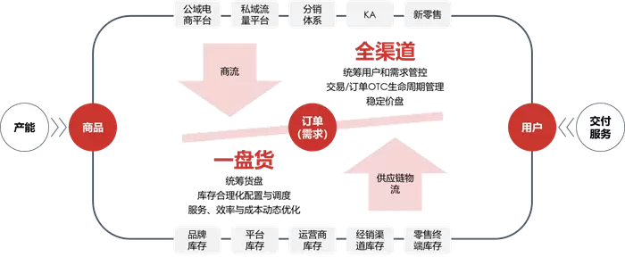 这一模式的核心,是构建“全渠道+一盘货+数字化”的生态体系升级,在商流层面,通过全渠道全面覆盖,统筹用户需求、稳定价盘,在物流层面,通过一盘货的方式统筹货盘,加强对货物的动态把控与优化。