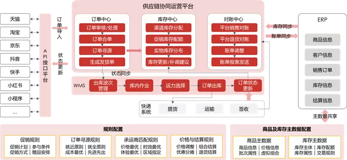 从线上供应链的环节来看,电商流量见顶,平台的运营策略,从“拉新”,走向“留存”,在用户运营、营销创新等方面,创新层出,供应链体系,则需跟上纷繁的平台玩法,做好库存备货、各种销售规则下的订单履约、账单管理。
