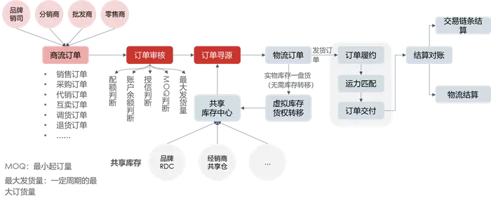 线下供应链的数字化协同解决方案,核心是解决品牌尝试不同模式的“一盘货”转型过程中,在维护既有销售关系、授信情况、结算分利机制等的基础上,实现多层级渠道之间的可用库存、订单信息共享。