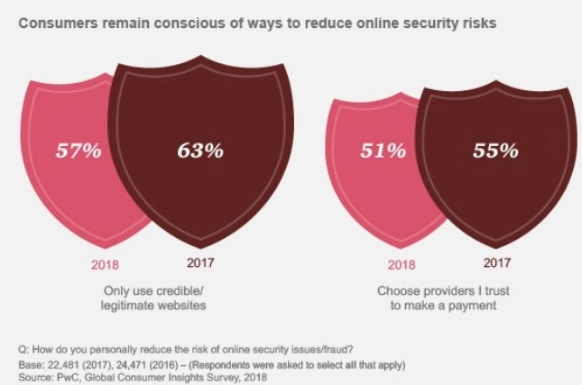 值得注意的是,自去年的调查以来,总体消费者的安全防范措施似乎略有下降。这可能意味着消费者更信任零售商,同时也意味着对可靠安全的期望提高。