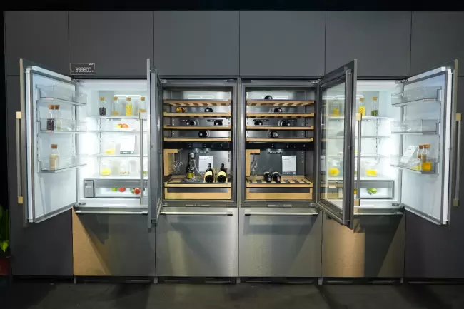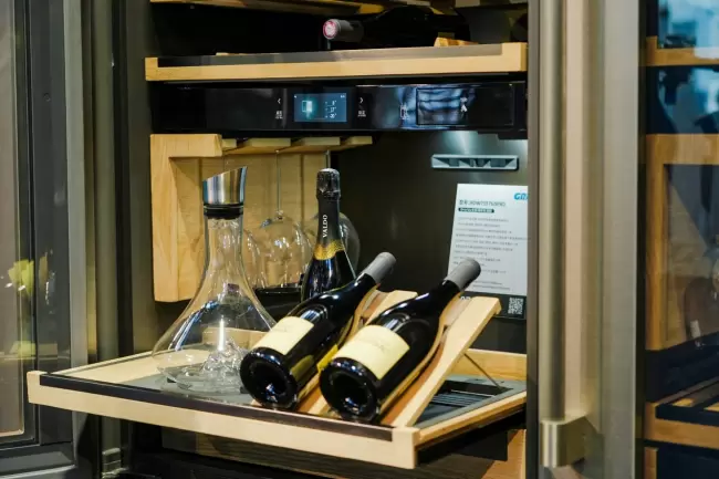 现场展示的GRF明星产品中,嵌入式酒柜也聚焦了全场参观者的目光。该酒柜恒温恒湿、避光避震,拥有窖藏级别的葡萄酒储鲜环境。它还搭载了集温控、养鲜、净味三大技术于一体的CLIMATE WALL系统,内置多个智能温控芯片,0.1秒感知箱内温度变化并送风,实现全空间均匀恒温。酒柜湿度始终保持在45%~80%,均匀恒湿的环境能让葡萄酒缓慢持续的发酵熟化,延长葡萄酒的最佳赏味期,为顶级葡萄酒储存提供了新选择,是高净值人群身份与品味的象征。