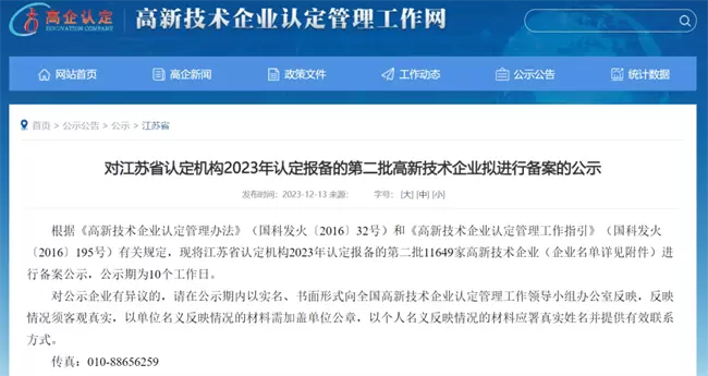 12月13日,全国高新技术企业认定管理工作领导小组办公室对江苏省认定机构2023年认定报备的第二批高新技术企业进行备案公示,智云健康旗下两家子公司江苏成升基因精准医疗科技有限公司(以下简称“成升基因”)、宝利化(南京)制药有限公司(以下简称“宝利化”)成功荣获“国家高新技术企业”资质认定,由此正式迈入国家高新技术企业行列,开启全新征程。