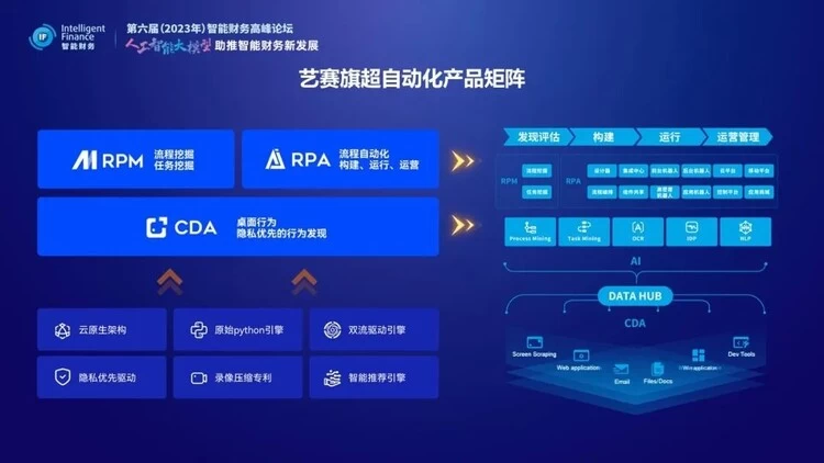 总而言之艺赛旗超自动化产品矩阵是助力财务从专业化、标准化、流程化向自动化、智能化和数字化转变的关键工具。它能够帮助企业深挖数据资产,驱动业务流程的精简化和智能化,高效提升业务效率和企业效益。