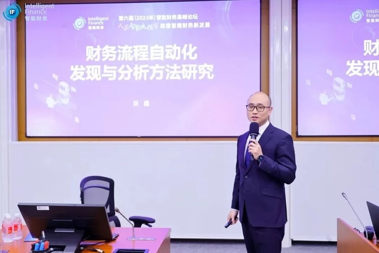 在“智能财务基础理论与应用实践”分论坛上,艺赛旗联合创始人兼CTO吴鑫分享了他在智能财务领域的最新课题研究成果——“财务流程自动化发现与分析方法研究”。