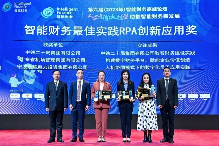 会上,智能财务研究院院长和联席院长共同揭晓了第四届智能财务最佳实践评选结果,其中,艺赛旗客户宁波永耀电力投资集团有限公司荣获了智能财务最佳实践RPA创新应用奖。