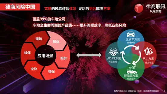 律商风险具备全面的品牌、车系和车型数据,包括超过200个车辆静态维度的特征信息,覆盖市场上约4.17亿辆车。通过科技赋能,律商风险致力于推动保险业的高质量发展,支持公平合理的保险费用收取,这与商业车险综合改革的目标——降低成本,扩大保障,是一致的。