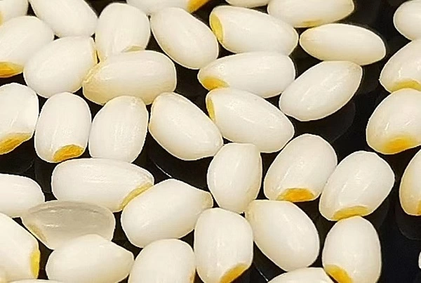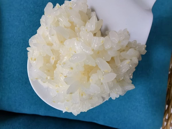如玉软香胚芽米,颗粒饱满、质地坚硬、色泽清白有光泽;当放入锅中,随着水温升高,米粒慢慢变得膨胀、饱满而诱人,散发出特有的米香,米粒透明或半透明,表面泛着淡淡的油光;入口口感绵软,微甜,略有韧性。