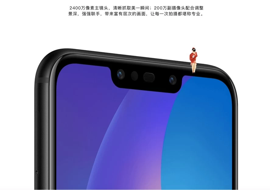 前置摄像头为F2.0大光圈2400万+200万的摄像头组合,其中,2400万像素的主摄像头负责记录影像信息,而200万像素的副摄像头则负责记录精神信息,一方面保证了画面的精细自然,另一方面也保证了虚化效果更佳专业立体。