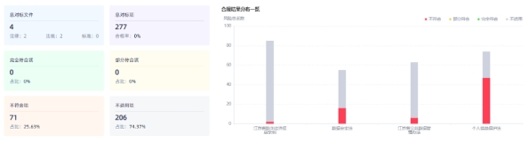 作为降低合规风险的重要环节,通过系统合规分析将复杂的法律法规结合用户现状,生成简洁清晰的结果,指向性规避合规问题,避免遭受违法违规处罚。