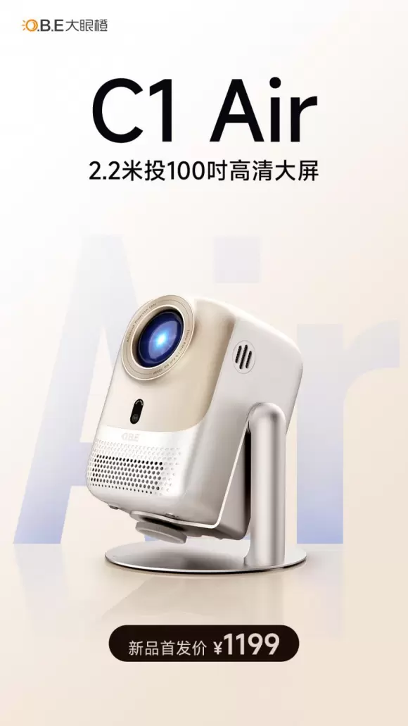 - 首发速递:大眼橙C1 Air云台投影仪预售开启,小巧便携高亮