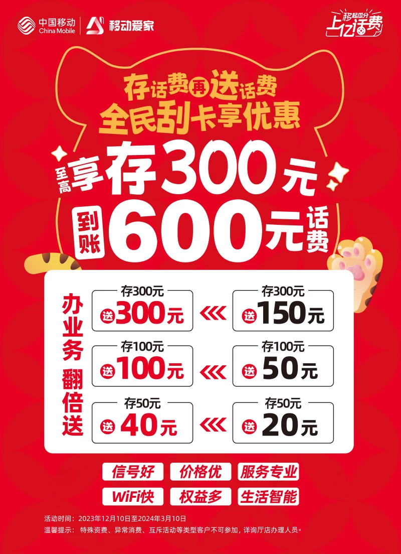 存话费翻倍送!“移”起瓜分上亿话费福利