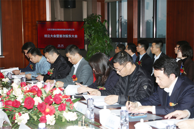 12月15日,江苏日御光伏新材料股份有限公司创立大会暨第一次股东大会顺利召开。全体发起人股东、董事候选人、监事候选人、高级管理人员候选人,客户代表,政府代表,中介机构代表等出席了本次大会,共同见证江苏日御光伏新材料股份有限公司的成立。会议由董事长郭鹏主持。