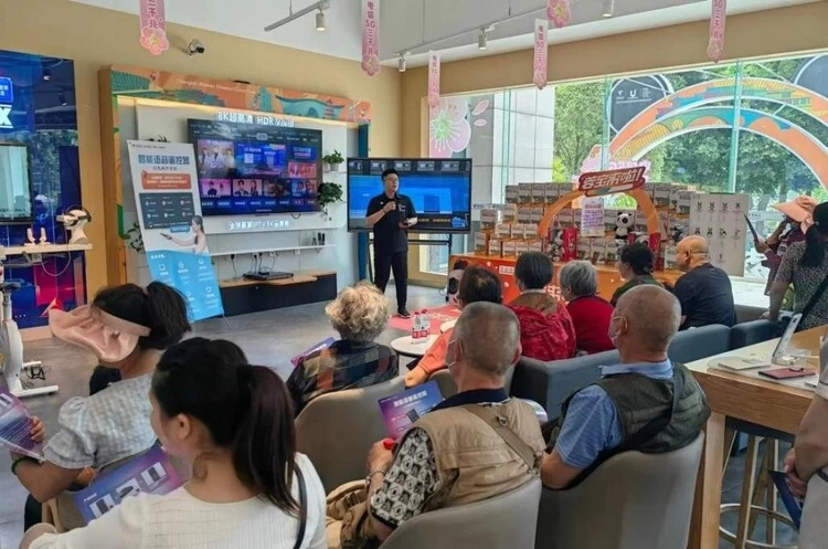 5月,科大讯飞走进成都新华标杆营业厅开展助老惠民服务活动,通过语音遥控器切实帮助老年人提升智能电视使用能力,有效帮助老年人跨越“信息化鸿沟”,提升他们的获得感,幸福感和安全感。