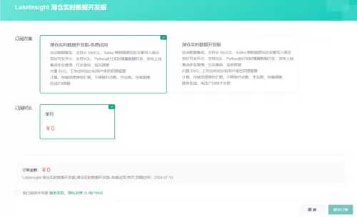 LakeInsight 湖仓实时数据开发版支持免费试用一个月。试用期内,所有功能点、任务数、计算节点、存储规模均无限制,还可享有原厂技术团队在线 5*8 答疑。现在前往 KubeSphere Marketplace,即可免费订阅 LakeInsight 湖仓实时数据开发版。
