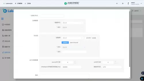 用户可以通过 KubeSphere Marketplace 订阅部署 LakeInsight 湖仓实时数据开发版,快速为 KubeSphere 平台添加数据湖仓功能。部署完成之后,平台管理员可在 KubeSphere 导航栏直接进入数元灵数据智能平台,来进行数据源添加,数据入湖,数据分析,任务管理等操作,也可以添加企业内用户的登录权限,并通过对接 KubeSphere 不同权限级别的用户,来实现数据智能平台的权限隔离。