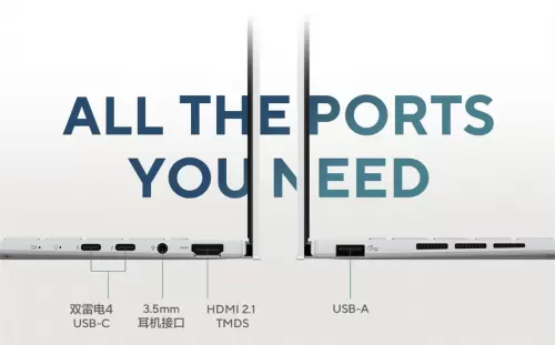 它还配备了包括双雷电4在内的全套高速接口,赋予灵耀14更强的场景泛用性,为接入更多外设提供保障,满足日常办公、数据传输等需求。