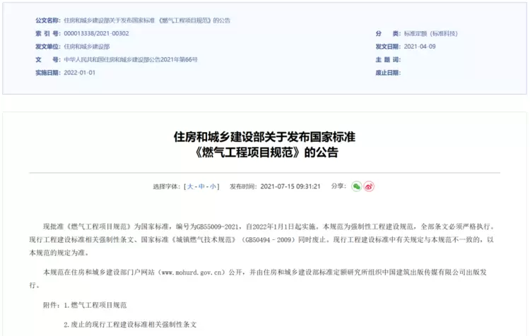 △国家住建部发布《燃气工程项目规范》