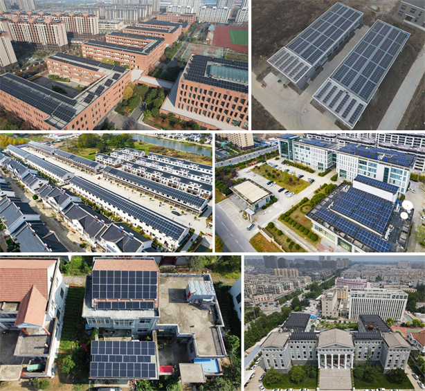灌南整县项目完全按照国家能源局“5432”比例要求进行建设,目前整体开发建设进度处于全国前列,为全国整县推进试点项目的落地实施做出表率。项目覆盖了党政机关、医院、学校等公共建筑、市政水务、农贸市场、工商园区、居民住宅等应用场景,随着光伏发电的不断推广,一批批遍及全县的“低碳乡村”、“低碳办公”、“绿色农业”、“低碳校园”等示范项目落地生根,成为现代化灌南建设描绘生态价值多元转化的绿色“新画卷”。