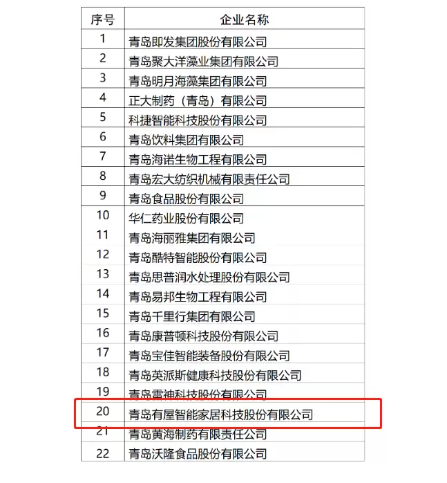 - 有屋连续四年入围新一代“青岛金花”培育企业