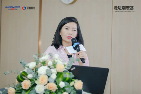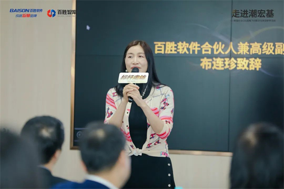 上午活动开始,百胜软件合伙人兼高级副总裁布连珍(Linda)女士进行了精彩致辞。她首先欢迎来自各行各业的企业家共聚一堂,参加百胜软件精心筹划的标杆走访与研学活动。潮宏基是百胜软件E3+企业中台的第一个项目,数年以来E3+企业中台一直在迭代升级,但回望和思考与潮宏基一起走过的峥嵘岁月,总会有新收获和新思考。本次“走进潮宏基”的标杆参访,为大家提供了一个开放共享的平台,期待大家在沟通、对话、探讨中探寻企业数字化转型有效路径,预祝大家在此收获经验、收获美好!