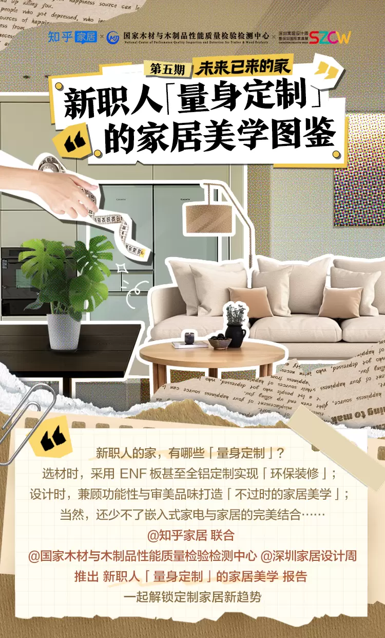 12月19日,知乎联合国家木材与木制品性能质量检验检测中心、深圳家居设计周发布了《未来已来的家》第五期《新职人“量身定制”的家居美学图鉴》,通过知乎用户数据及家居内容洞察,总结出当下新职人在家居设计“个性化”、装修选材“健康化”、家具审美“无风格化”、家居家电“智能一体化”四大家居消费趋势,为消费者提供家居消费建议。