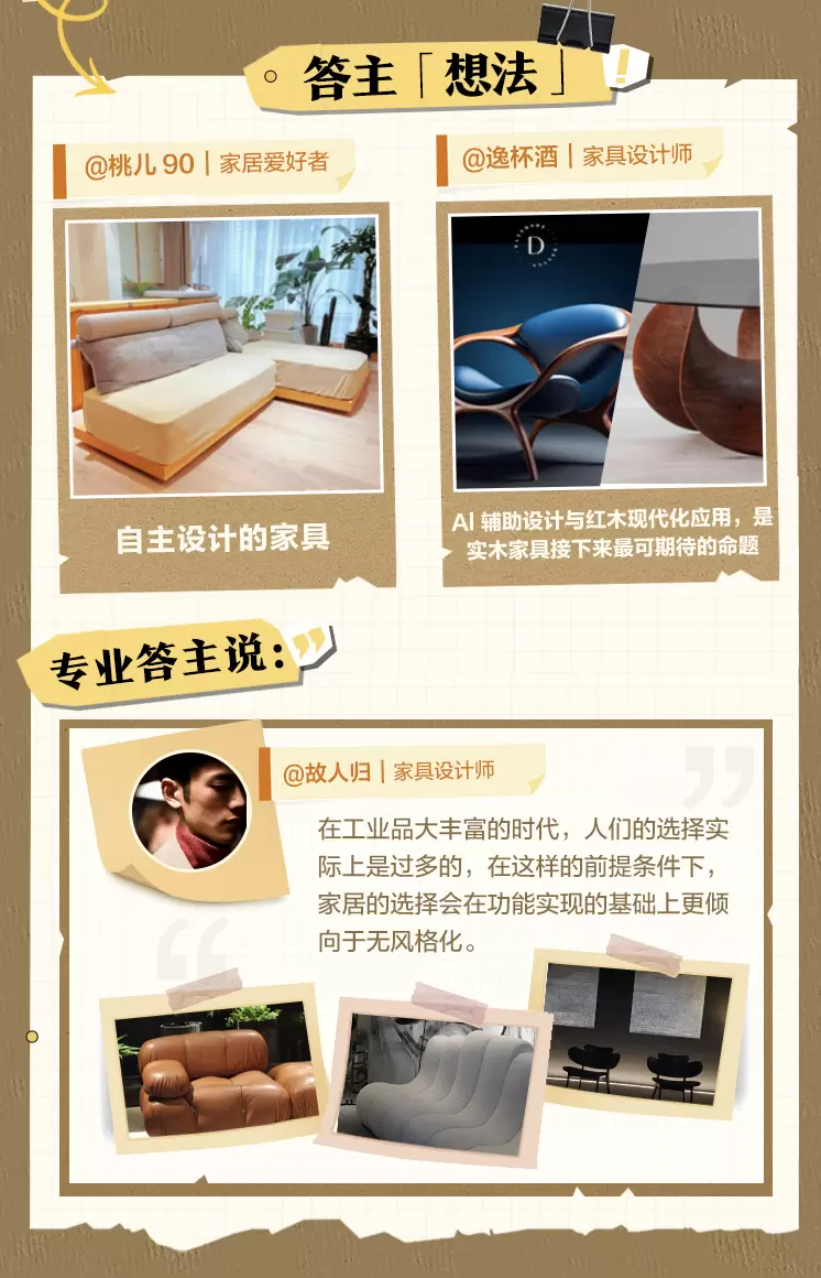 在家具品位上,越来越多的新职人会突破风格限制,选择多元化的家具设计。家具设计师、知乎答主“故人归”表示,在工业品大丰富的时代,家居的选择会在功能实现的基础上更倾向于无风格化。