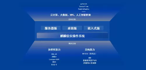 麒麟信安已形成了基于openEuler技术路线同步迭代发行商业版本能力,构建了全要素、全流程自主可控的操作系统版本软生产线,可稳定安全供应服务器、桌面、嵌入式等操作系统商业发行版,南向支持多样性算力与异构算力,在操作系统行业内率先同源异构支持了X86_64、ARM64、Loongarch64、SW64和RISC-V架构,面向AI场景支持NVIDIA(英伟达)、AMD、景嘉微和昇腾等芯片;北向支持云计算、大数据、高性能计算(HPC)以及多种人工智能模型等应用。麒麟信安操作系统覆盖了IT、CT、OT全场景应用,可以为我国数字基础设施提供充分广泛的算力支撑与加速。