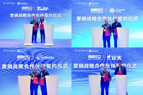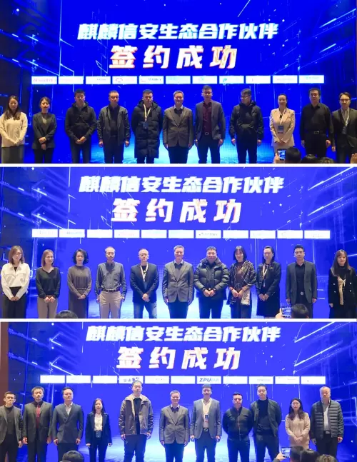 本次麒麟信安分论坛,齐聚芯片、整机、数据库、中间件、图形图像、安全防护、存储等众多软硬件伙伴,麒麟信安与百信信息、华宇信息、超能机器人、安天网络、龙芯中科、飞腾、兆芯、电科申泰、人大金仓、南大通用、优炫软件、达梦数据、神舟通用、瀚高股份、东方通、中创股份、金蝶天燕、金山办公、数科网维、福昕鲲鹏、永中软件、天融信、中孚信息、北信源、可信华泰、华鲲振宇、中科腾龙、宝德计算机、芯瞳半导体、宏杉科技、中望软件、实进智、普世科技、众谱达等三十四家优秀企业签订伙伴战略合作协议,各方将进一步在产品认证、行业生态建设、重点行业典型标杆案例打造等多维度展开更紧密合作,以生态联合,协同赋能更多行业客户实现技术突破和应用创新,在加速自主创新之路上再添助力。
