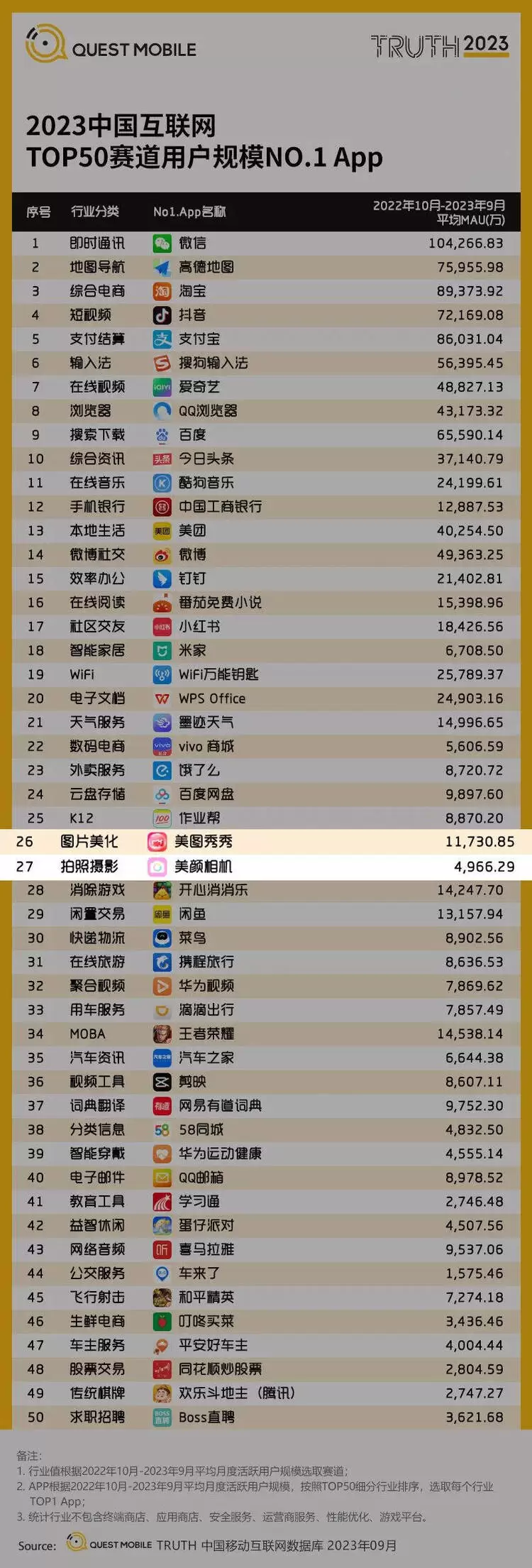 - 2023中国互联网女性用户最喜爱的App:美图秀秀!